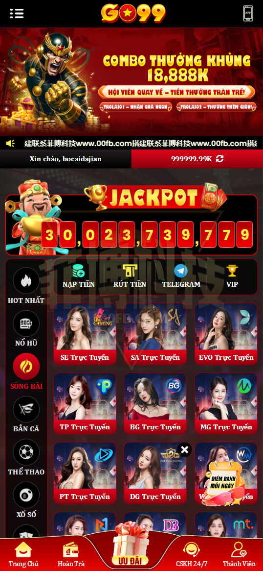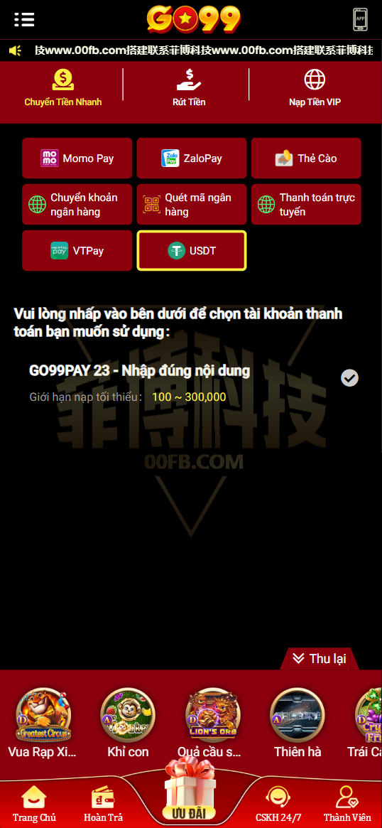 GO99 越南综合盘源码是一套专为东南亚市场打造的成熟型娱乐系统,前端基于 Vue、后端采用 PHP(ThinkPHP) 构建,系统结构清晰、性能稳定,可支持高并发访问,是目前越南娱乐行业中使用率极高的综合类框架。